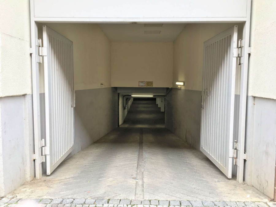 Die Tiefgarage ist durch ein Gittertor gesichert und gut ausgeleuchtet. Die großzügige Gestaltung der Garage bietet genug Raum zum rangieren.